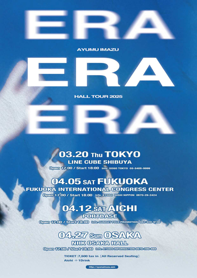 2025年3月20日(木・祝)の東京・LINE CUBE SHIBUYAを皮切りに、4月5日(土)福岡・福岡国際会議場メインホール、4月12日(土)愛知・PORTBASE、4月27日(日)大阪・NHK大阪ホールと4大都市でのライブツアー<Ayumu Imazu HALL TOUR 2025 “ERA”>を経て、そのツアーを締め括るパフォーマンスとなる。