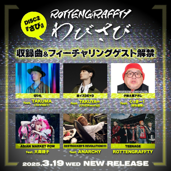 その「わび」「さび」をフラッシュで少しずつ聴けるアルバム先行ティザーも公開。ROTTENGRAFFTYのX等で確認できるので、ぜひSNSまわりをチェックしてほしい。