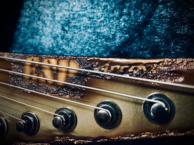 全てにおいて一切の妥協の無い、まさに芸術品のようなギターですが、所有者はドラマーなのでステージでスポットライトを浴びる事はありません。どうしてこうなった。