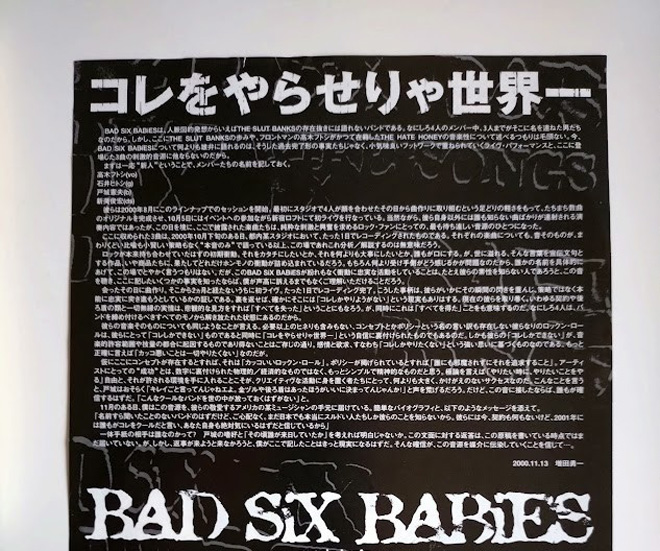 戸城憲夫:まあね。とはいえTHE SLUT BANKSでも特に制約があるわけじゃないんだけど、THE SLUT BANKSに石井ちゃんが加わった頃からBAD SiX BABiESにかけての頃の俺って結構いい曲書いてたな、冴えてたなって思えたことがあって。まあ、自分で勝手にそう思ってるだけかもしれないけどね(笑)。