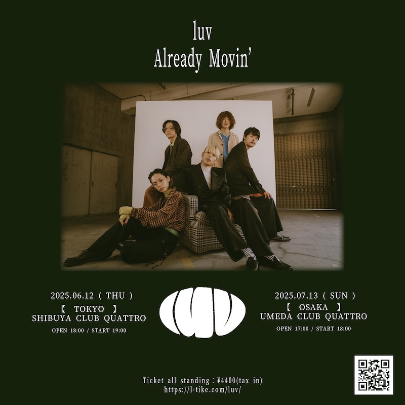 現役大学生による5人組バンド・luvが、東京・大阪のCLUB QUATTROにてワンマンライブ<Already Movin’>を開催することを発表した。