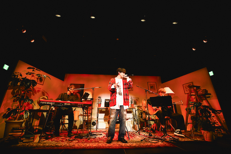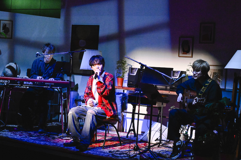 本ライブでは、普段の音楽制作部屋をイメージしたステージから、自作曲「猫がいびきで」を含む4曲をアコースティック編成で初披露。