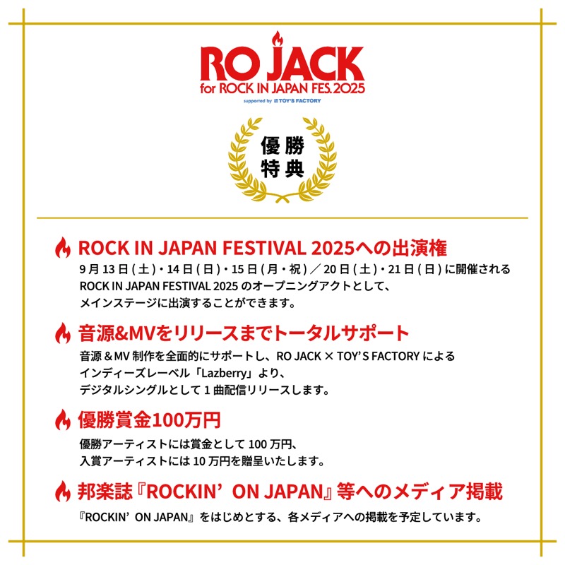 “RO JACK for ROCK IN JAPAN FESTIVAL 2025”のパートナーレーベルはTOY’S FACTORYです。この新しいRO JACKを通して、音楽シーンの未来を創る才能に出会えることを楽しみにしています。