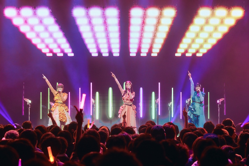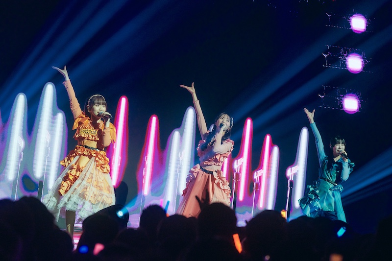 ライブは代表曲「コネクト」からスタート。クララ、エリー、アンナの3人組ユニットならではの息の合ったハーモニーとダンスフォーマンスに、来場者はメンバーカラーのパステルピンク、パステルブルー、パステルオレンジのペンライトを振りかざしライブを盛り上げた。続けて、新体制では初披露となった人気曲「STEP」を披露し、会場からは大きな拍手が贈られた。