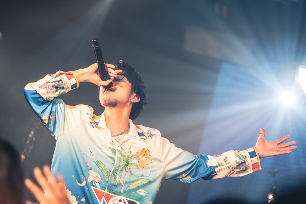 GUCCHIが語った、「始めたばかりの頃には、わからなかった、歌う事の理由、伝える意味が、メンバーと、ここにいるみんなのお陰で最近わかるようになってきた、心からありがとう。」という想いと共に、「倍恩」を情感たっぷりに歌い上げると、客席には涙を拭うファンの姿も。