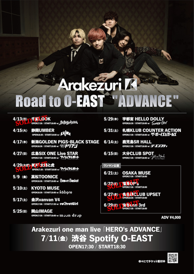 今月4月13日から全国ツアー<Arakezuri Road to O-EAST “ADVANCE” >をスタートする彼ら。7月11日には自身最大キャパとなる渋谷Spotify O-EASTでのワンマンライブも控えている。チケットは、ソールドアウト公演を除き、現在一般発売中だ。