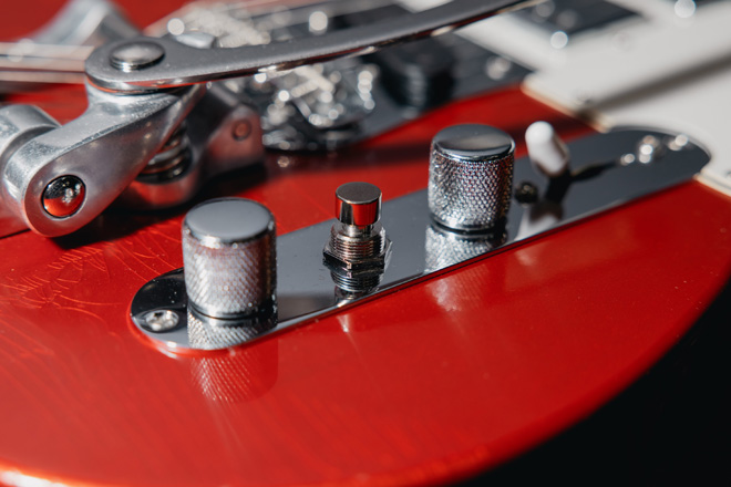 Stories Collection Mike Campbell Red Dog Telecasterに搭載された2基のマイク・キャンベルシグネイチャーハムバッカーは、他のテレキャスターとは異なる重厚な低音のうなりとハイパワーのサウンドを出力し、カスタムシングルコイルブリッジピックアップは、テレキャスターならではの音色を提供する。コントロールノブのシルバーボタンを押すと“Destruct”回路によって瞬時に+34 dBブーストされる。