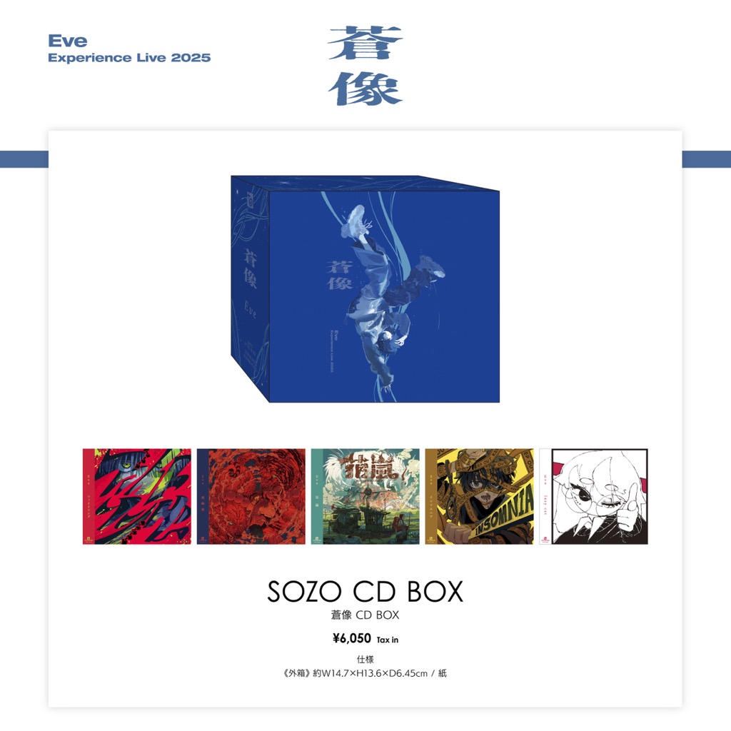 Eveによる企画展<Eve Experience Live 2025「蒼像」>が3月20日〜4月6日の期間、表参道ヒルズ スペースオーにて開催され、約12,000人を動員する盛況ぶりで最終日を迎えた。これを受け、会場限定で販売していた豪華5枚組となる『蒼像』CD BOXが4月12日(土)19:00からTOY’S STORE限定で追加販売されることが決定した。