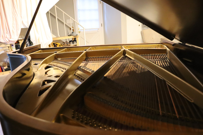 そうか、アメリカ国内の移動だからワシントン条約とか関係ないのか、ブラジリアン・ローズウッドとかホンジュラス・マホガニーとか入手し放題か…って関係ないところで脊髄反射しちゃいました。いやしかし、深い愛と高い熱量と正しき知識を兼ね備えると、いろんな奇跡が起こるんですね。おそらく、この貴重なピアノの前オーナーも、譲るべきピアノストに出会えたことに最大の喜びを感じたわけですよね。君ならあげるというわけだもの。ひとつの楽器に対し、何もわからずに手放そうとする娘さんとAさんとのテンションの違いに、人の世は面白いなと思います。こうやって世の中が動いたり、風が吹いたりするんだなあと痛感しました。ところで、こちらには名前はつけないの?GP156がカヌレなら、この子はフィナンシェ?(BARKS 烏丸哲也)