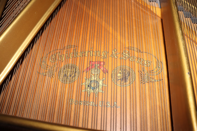 その名もChickering&sons 5’7″ “Anniversary Grand”。まず、Chickering&sonsというブランドについてお話しませう。まるで聞き馴染みがないこちらのブランドですが、あのSteinway&sons創業者、Henry E Steinway氏がSteinway&sons社を創業する前、ニューヨークの劇場で「体験」して大ショックを受け、設計思想に大きく影響を与えたピアノブランドだそうな。Chickering&sons社は1823年、ボストンにて創業。アメリカ最古のピアノブランドであったそうな。ちなみに今では常識になっている一体成型鋳鉄フレームを開発したのもこの会社。