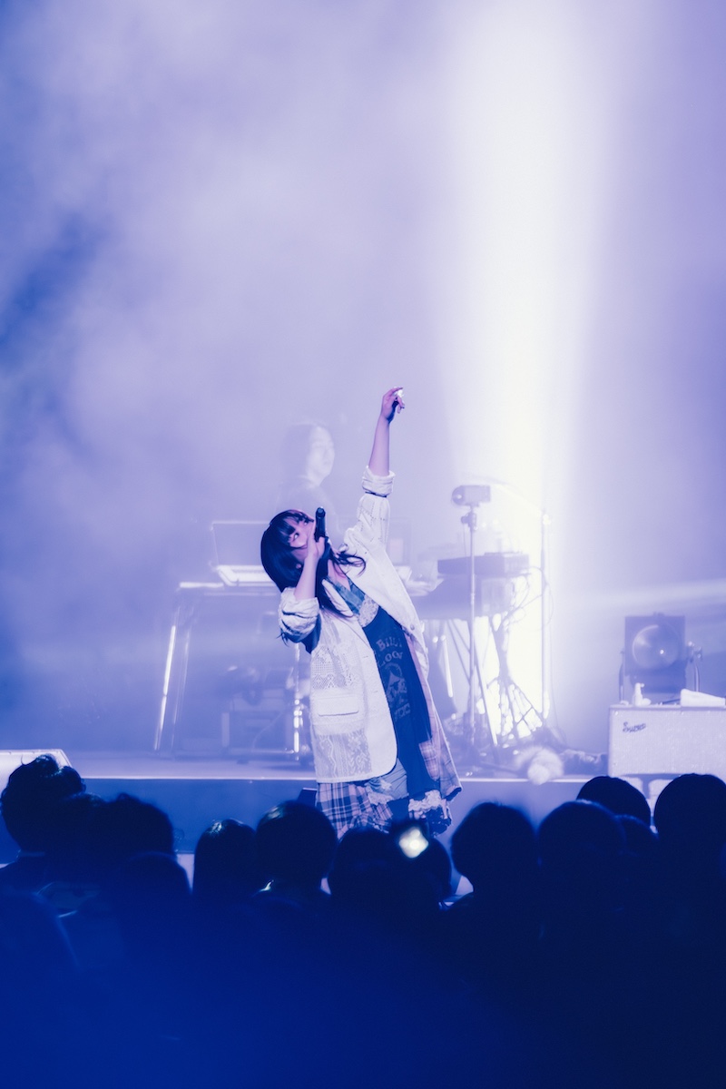続けて「クランベリージャムをかけて」。にしなはギターの代わりにバッグを肩にかけ、ステージを歩き回りながらそこから取り出したキャンディを客席にばら撒く。「キャンディ、ほしい人!」という声にあちこちで手が上がる。その後も「東京マーブル」に「ケダモノのフレンズ」と楽曲を重ねながら、オーディエンスとコミュニケーションを取っていくにしな。リラックスした雰囲気のなかで、場の一体感はさらに高まっていった。