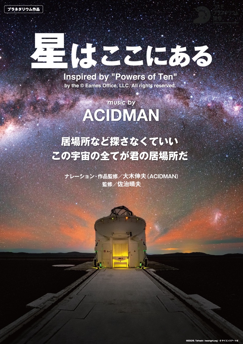 ACIDMANの大木伸夫がプログラム監修およびナレーションを務めるプラネタリウム番組の第3弾『星はここにある~music by ACIDMAN~』が、3月より東京・コスモプラネタリウム渋谷にて投影中だ。同作品の予告動画にて、リリース未定新曲「光の夜」の一部が初公開となった。
