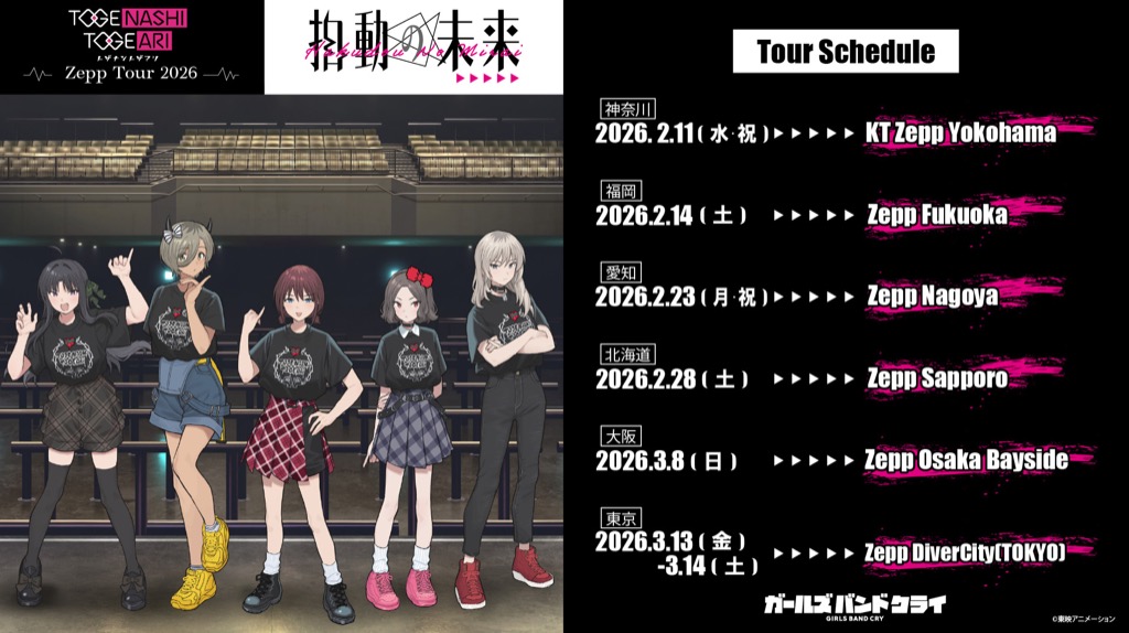 アニメ『ガールズバンドクライ』劇中の主人公たちによるバンドと連動するリアルバンド・トゲナシトゲアリが、新曲「飛べない蝶は夢を見る」のMVを公開した。