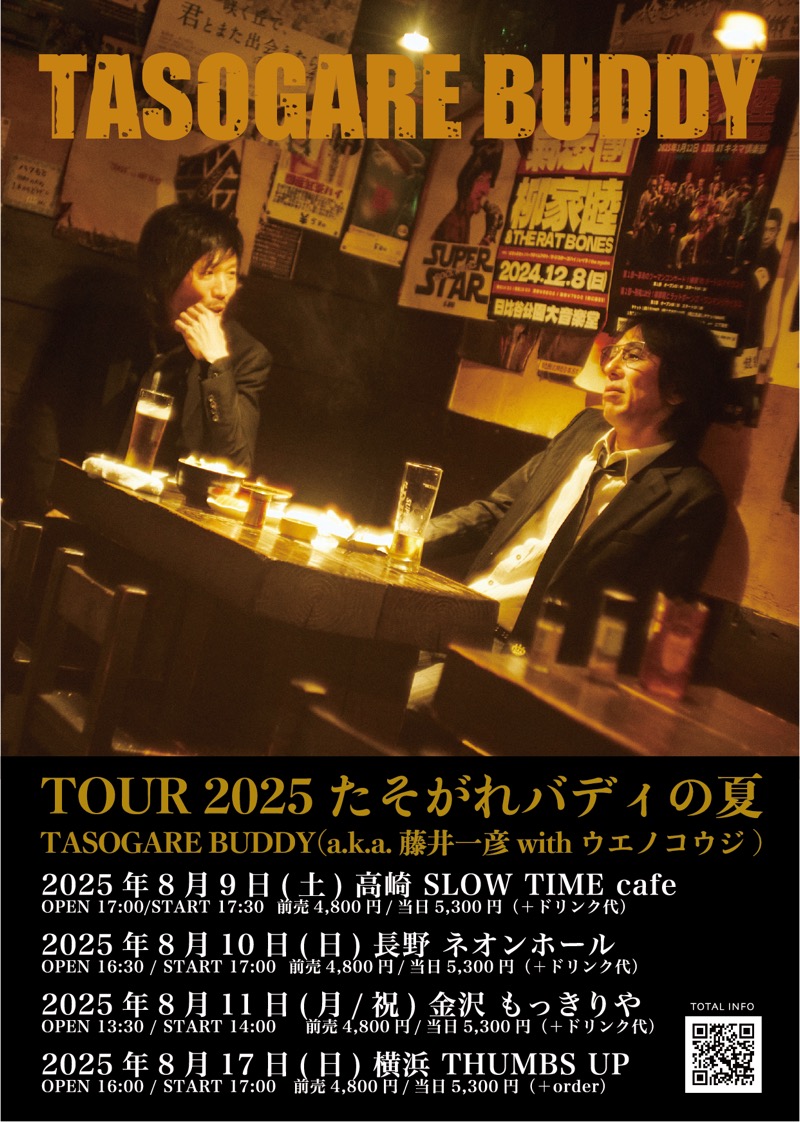 藤井一彦×ウエノコウジによるユニットTASOGARE BUDDY、追加ツアー<たそがれバディの夏>開催決定