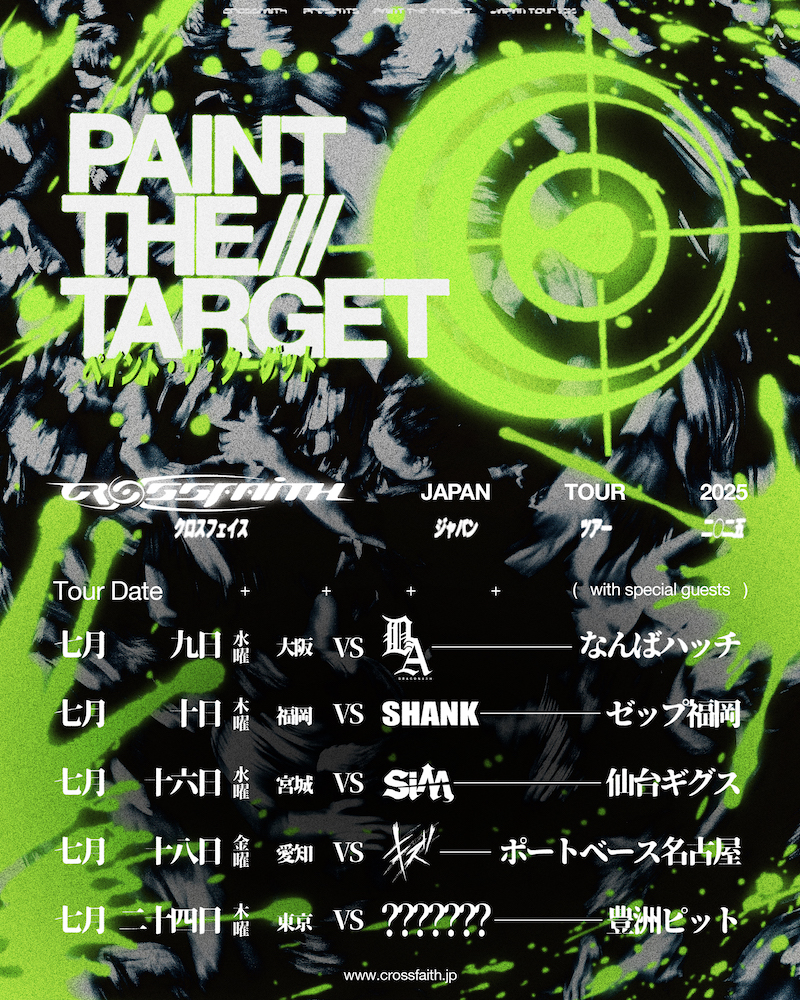 Crossfaithが7月に開催する<Crossfaith JAPAN TOUR 2025 – Paint The Target ->の、東京を除く全国各公演のゲストアーティストを発表した。
