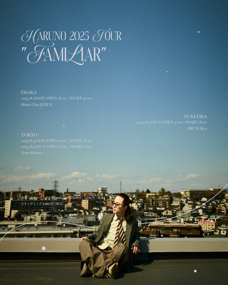 春野が、約1年ぶりとなるワンマンツアー<Haruno 2025 Tour “Familiar”>の開催を発表した。