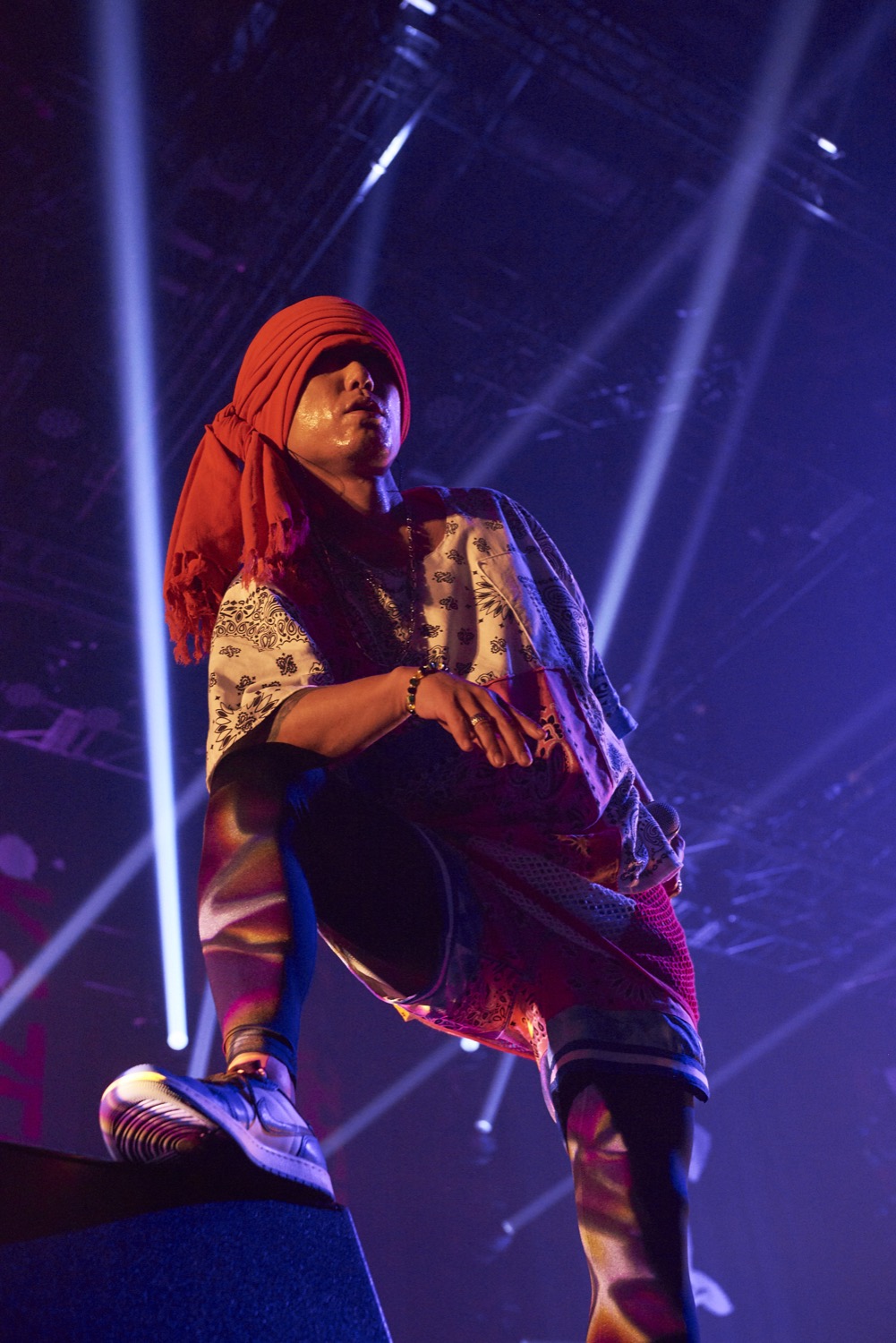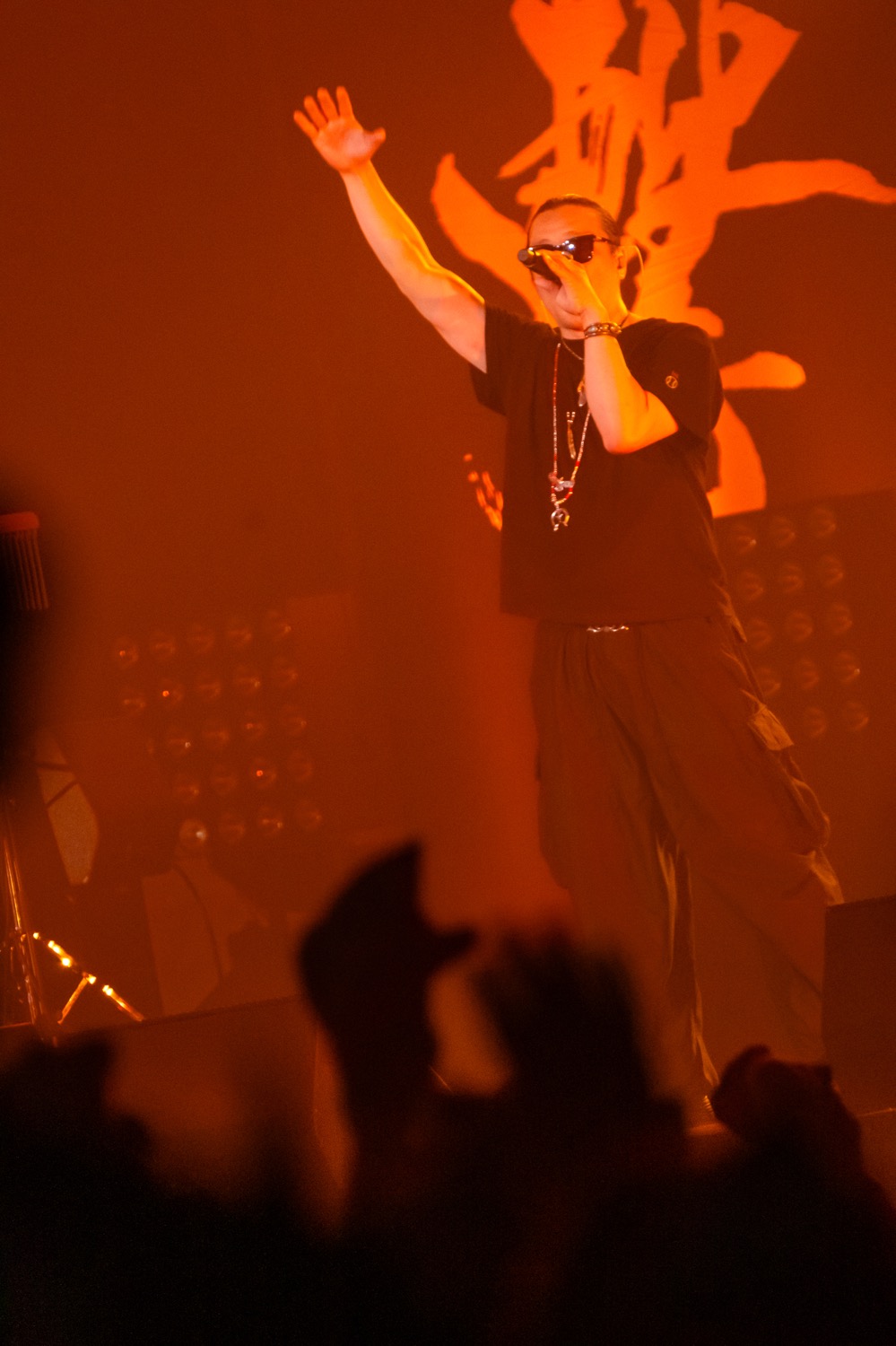 まずは、お馴染みのオフィシャルDJ/バックセレクターを務めるThe BK SoundによるDJタイムだ。約12000人のオーディエンスはタオルを振りながら楽しみ、早速熱気が充満した。幕が開き、RED RICE、若旦那、SHOCK EYE、HAN-KUNが登場。約22年間の活動の中で発表してきた新旧の楽曲を次々と披露する中、歌詞に何度も〈横浜〉というワードを入れてアレンジし、この日だけの特別感を宿していった。