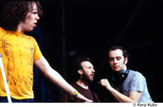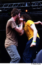 チック・チック・チックという発音でお馴染みの!!!。読み方は同音を3回繰り返すものならなんでもあり。バンド名からして“そんなバンド今まであったか…?”という感じでイカしているのだが、前N.Y.ジュリアーニ市長の市政を批判したシングル曲「ミー&ジュリアーニ・ダウン・バイ・ザ・スクール・ヤード」で話題となり、アルバム『LOUDEN UP NOW』もリリースしたばかりとあって大注目のフジロック・ステージ。
