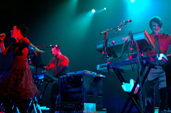 フロント・アクトとして登場したのは、同じノルウェー出身のアニー。昨年、ロイクソップのメンバーも参加したアルバム『アニマル』がリリースされたばかりの女性アーティストである。実際はDJとしての活動経験もあるアニーだが、ここではシンガーとしての顔に徹しているのが興味深かった。その音は80年代のテクノ・ポップからユーロ・ビートあたりまでを視野に入れたいかにもチープなタッチで、正直なところ1時間弱ともなれば途中で新たな展開が欲しくなったが、デペッシュ・モードやイレイジャーが大好きというロイクソップの二人の趣味の琴線に触れる部分も確かにあり、今あえてここまでチープなサウンド・テクスチャーで音楽をやることの意味合いをつくづく考えさせられた。