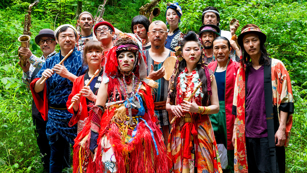 日本の民謡や歌謡曲、そしてアジアを中心とした各国のサウンドと芸能の要素を取り入れた音楽は、小さな子供からお年寄りまで誰もが楽しめるもの。会場の後ろの方で腕を組んで見ていた初めてのお客さんも(それがたとえ通りすがりの人であっても!)最後には我を忘れて踊りだす。そんなライブが繰り広げられてきた場所も独特だ。ホールや劇場はもちろんのこと、芝居小屋、酒蔵、寺社仏閣の境内、闘牛場、魚市場、河川敷とさまざま。海外公演も精力的に行ってきた。演奏形態も場所にあわせて変幻自在。エレクトリック、アコースティック、無電気ライブと一期一会のライブ空間を生み出す。