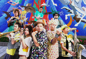 沖縄出身・在住の8人組バンド、All Japan Goith(オール・ジャパン・ゴイス)が、東京・原宿のKDDIデザイニングスタジオで発売記念イベントを行なった。7月25日に発売されたニュー・シングル「恋せよ乙女/ハリーハリー」を含む計7曲を披露し、ファンはもちろん、夏休み中の学生など、集まった多くの観客を沸かせた。