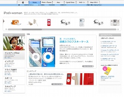 「iPod + Woman」のページでは、スワロフスキー・クリスタルをあしらったケースなど、女性のためのiPodアクセサリーを主に取り扱う。