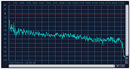 こうした音色を重ねた全体像は、いったいどんなサウンドになっているのだろうか。今回はそれを周波数分布の側面から調べてみた。周波数とは簡単に言えば音の高さのこと。そして周波数分布はどんな音域がどれくらい強く含まれているかを示すものだ。つまりこれを調べれば全体の音の構成がわかるのだ。 周波数分布はもちろん曲によって少しずつ違うし、曲の中でも刻々と変化するものだ。しかしI’veの楽曲の周波数分布をグラフで見てみると、その多くが似たような形になっている。まずグラフを見てわかるのは、全体にフラットな形になっていること。これは高域から低域まで、どの音域の音もまんべんなく同じような強さで含まれているということだ。I’ve以外の様々なジャンルの楽曲の場合はこれほどフラットではなく、どこかに大きな山や谷が現れたりするのが普通なので、これは大きな特徴といえる。様々な音域をカバーする音色を巧みに使い、音域を偏らせないようにうまくバランスをとって作られているのだろう。 また、グラフはなだらかに右肩下がりになっている。これは他のジャンルでもよくあるパターンだが、もっとも低い音域に注目すると、100Hz付近に小さいピークがある。これはベースやドラムの低域に迫力を増す効果がある音域だ。これによってパンチのあるサウンドに仕上がっているのだ。 さらに、通常はサビやイントロといった曲中のセクションが変わればこのグラフの形は変化するのだが、I’veサウンドの場合はそれも大きく変化しないことが多い。つまり1曲を通じてサウンドが一定していて、極端に変化しないのだ。この安定感も、I’veサウンドの特徴のひとつといってもいいだろう。