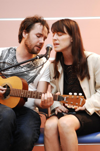 さらに、ここになんとフジ・ロック・フェスティヴァル後日本に滞在していた、BROKEN SOCIAL SCENEの歌姫にして現在全世界で大ブレイク中のファイストが飛び入り参加! ケビン・ドリューのアルバムから『SAFETY BRICKS』を演奏するというサプライズ。まさに前代未聞、古今未曾有、大満足の試聴会と相成った。