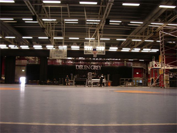 到着当日の8月6日は完全に移動日ということで、基本的にはオフ。そして翌日、彼らが訪れたのは、街のはずれにあるARENANという会場。ご覧のように巨大な体育館のようなスペースで、実際、バスケットボールのコートが常設されていたりもする。ライヴの際にはフロアの中央をカーテンで仕切って使うため、キャパシティは約2000人。しかしそれでも現地の関係者によれば「ここでのライヴがソールドアウトになることは滅多にない」とのこと。そう、今夜もチケットはあらかじめ完売なのだ。