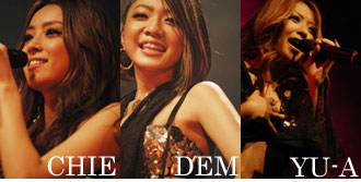 激しいダンス・チューンが続く中、Foxxi misQは、その歌声だけでも集まった超満員のファンを魅了する。「Magnetic Love」などのバラード曲では低音・中音・高音と三者三様の声質を持ったFoxxi misQならではの コーラスワークを披露し、三位一体のハーモニーに会場中が酔いしれる一面も。