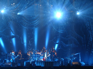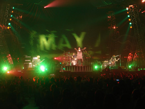 衣装チェンジした後半は、「空中ブランコ」のドラム・ソロでスタート、舞台各所から続々と炎が燃え上がり、一転してハードな雰囲気に切り替わる。「Ghost」「メランコリック」とライヴ定番のアグレッシヴなナンバーで入魂の演奏が続く中、「真っ赤な糸」でキメのMCの後にイントロが流れず、流れてきたと思ったら曲が違うという二重のハプニングが発生。でもそこは10年選手、突然のハプニングにも動じることなく「何度切れてもプラスティック・トゥリー、ちゃんと真っ赤な糸結びます!!」とファンを煽り、結果、より一層ライヴを盛り上げての演奏となった。本編ラストは轟音に陶酔する「アンドロメタモルフォーゼ」で締めくくった。