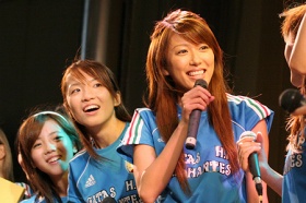 里田まい:「こんばんは、里田まいです! すっごいですねー。私、本当に、あの、ビックリしているんですけど。ここにいる方たちはもちろん、最後まで楽しんでいってもらいたいんですけど、普通に買い物にちらっときちゃった方は、買い物どころじゃなくなっちゃうんじゃないかと思うんですけど、ここをガッタス色に染めちゃいたいと思います。」