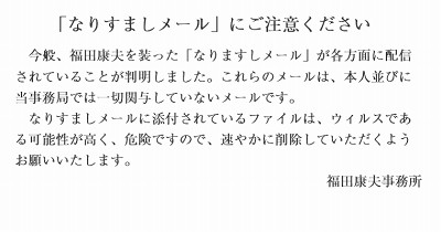 福田康夫オフィシャルサイトのトップページには、これに関する注意が掲示されている。