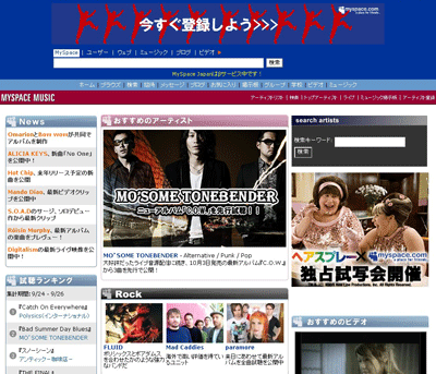 ↑MySpaceの音楽情報を集めたMySpace Musicページ。
