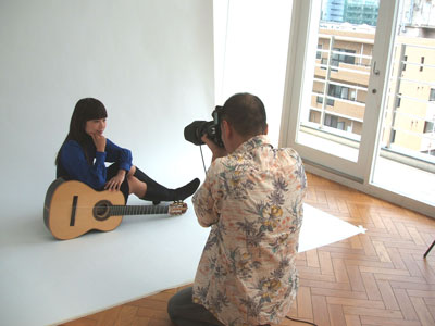 村治佳織の撮影はビル屋上の自然光が入るスタジオで。