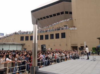 ブレイクのきっかけといわれるほど、デビュー時より盛り上がりを見せていたのが、ここ大阪で、今回の開催場所として選ばれた湊町リバープレイス(大阪市浪速区)には2000人以上が集まり、単独のフリー・ライヴとしてはデビュー以来最大の規模となった。