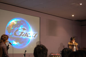 そんなマック・ファンのGackt。全米を騒がせたiPhoneも「発売日にたまたまアメリカにいたので、買える環境にあったから。……オタクだと思われるのイヤなんだけど(笑)」と、すでに購入済み。イベント当日のiPod touchのデモンストレーションでも、左手にマイク、右手にiPod touchを持ち、鮮やかな手つきで操りながらiTunes Storeの自身のカタログを紹介していた。
