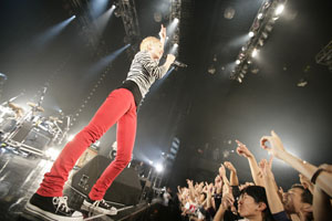 今年は初の武道館公演を含む全国25公演のツアー<Scratch>をはじめ、大型夏フェスなど、ライヴ・アーティストとして着々とキャリアを積んできたあとのZeppツアー。その熱気たるやハンパなく熱く、1曲目の「誰」から観客たちは掛け声&ジャンプの興奮度100%に突入! まるで“フェス”そのままの雰囲気。