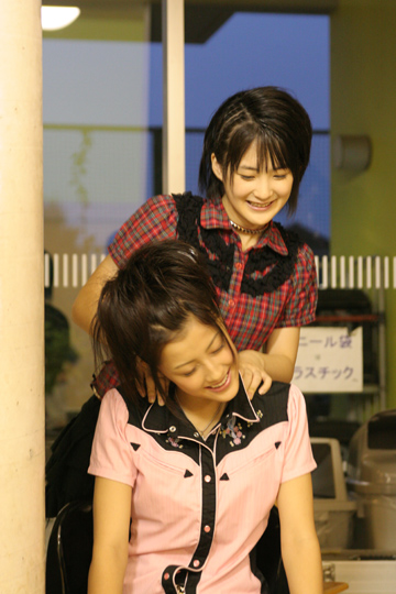 出番が終わって再び待ち時間のふたり。桃子は雅ちゃんやお疲れのマネージャーさんの肩を揉んであげてました。