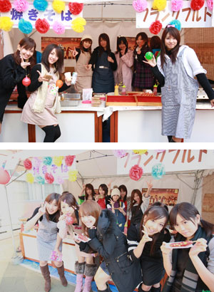 当日は、焼きそばやフランクフルト、ポップコーンなどの飲食店をはじめ、ヨーヨーすくい、スーパーボールすくい、スマートボール、輪投げなどアトラクションの模擬店も出店。AKB48のメンバーたちは店先に立ちながら、ファンたちとしばしの学園祭気分を味わった。