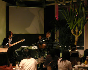 11月2日(金)に原宿cafe STUDIOで行なった<Bittersweet Lounge – vol.3>では、「歌と星空」をはじめ、『猟奇的な彼女』の主題歌として有名な「I Believe」のカヴァーや、まだ発売未定の新曲「月影ワルツ」を含め計6曲演奏した。