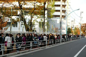 今回のイベントは、完全初回限定盤購入者から抽選で当たった人のみが参加できるというものではなく、来場者全員が握手会に参加できる上、スペシャルグッズももらえるという嬉しい内容。会場付近には朝早くからイベントに参加するためのファンが集まり、最終的には全国から3,000人を超えるファンが集まって列をなした。