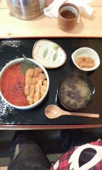 市場で食べたウニイクラ丼は、