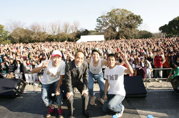 東京・八王子出身の3人組ヒップホップユニット・FUNKY MONKEY BABYSが16日、宮崎県宮崎市内の平和台公園・平和の塔前芝生広場特設ステージにて、東国原英夫(ひがしこくばる・ひでお)宮崎県知事をスペシャルゲストに招き、イベント<FUNKY MONKEY BABYS ライブイン平和台 ~宮崎に愛を込めて!~>を開催した。