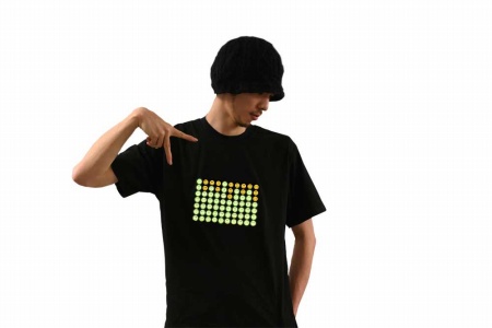胸についたELパネルが音に合わせて光る「T-Qualizer」。新作は“スマイリー”と“ハート”。特にブラックのハートタイプは、女性向け「T-Qualizer for Girls」の新色。音に反応するのは、前面のハートマークで、これが70~90dB程の音量で綺麗に光り輝くのだ。