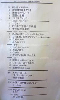 | ▲結生から送られてきた12月27日、奈良でのツアー・ファイナル公演のセットリスト。今回のツアーで、「空っぽな歌」は本当に特別な曲になった気がする。 |