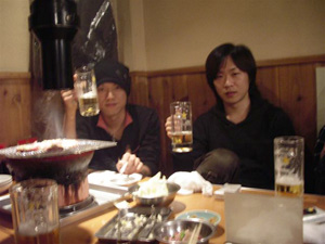 | ▲BUCK-TICKの打ち上げに初参戦する直前、ビールと焼肉でウォームアップするメンバーたち。これが事実上、<#3>の打ち上げでもあり、忘年会でもあった。 |