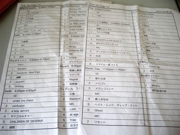 ▲『Over the Edge’07』、第一部、第二部のセットリスト。