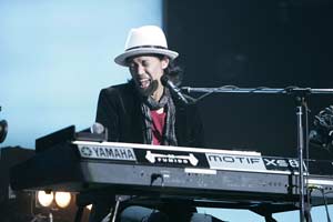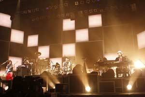 1曲目「ママのピアノ」につづき、彼らの名前を大きく一般に広めた名曲「愛してる」とミディアムバラードを立て続けに披露。M3「YOUR STORY」で、もう一度オープニングを迎えるような高揚感から一気に突き進む。渡は広いステージを右へ左へハンドマイクで歌いながら移動。彼らのライヴを始めて体験すると驚くかもしれない。「こんなに攻撃的なのか!」と。ステージセットにもニクイ仕掛けを施しアッと驚かされたり、完璧に風味堂空間を作り上げる。