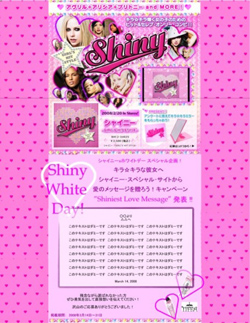 上記スペシャル・サイトの企画では、応募の中から最もアツいメッセージを寄せた1名様には、シャイニーのスペシャル・サイト上で3月いっぱいの期間限定で開設される“超プレミアム愛の伝言板”でのメッセージ掲載権、そしてキラキラな彼女に一層輝いてもらうための最新キラキラ☆コスメセットが贈呈されるとのこと。